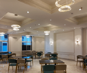 - इसमें निवासियों के मनोरंजन के लिए एक होम थिएटर भी दिया गया है तथा पारिवारिक कार्यक्रमों के लिए बैंकवेट हॉल व पार्टी लॉन भी दिया गया है।