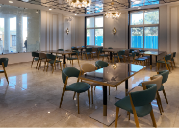 - इसमें इंतज़ार लाउन्ज व कैफेटेरिया उपलब्ध है, जहाँ आराम करने और सोशलाइज करने के लिए स्थान प्रदान किया गया है।