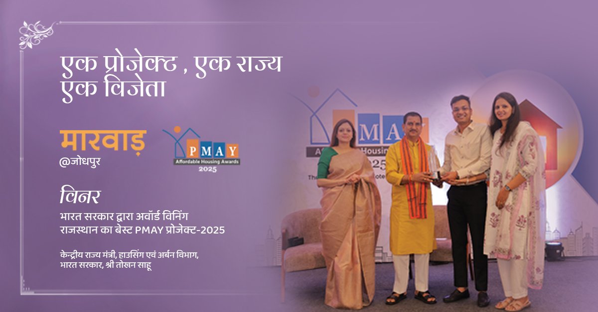 मुख्यमंत्री जन आवास योजना मे, राजस्थान का सर्वश्रेष्ठ प्रोजेक्ट